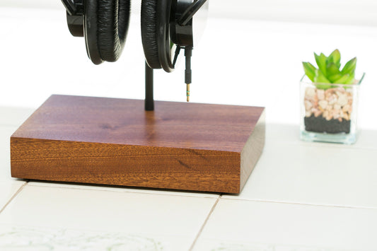 Mahogany Cubic Headphone Stand hand carved by M-ski